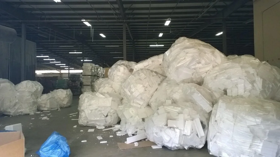 Below are a few pictures from International Cushioning Co., the company that processes the recyclable block styrofoam you help us collect, forming it into new molds or even creating insulation.