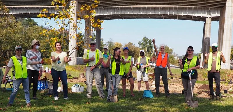In October 2021, under the guidance of biologist Bryan Tompkins of the U.S. Fish & Wildlife Service, GreenWorks volunteers and staff prepared the 2,000 sq. ft. site for planting by removing exotic plants and turf grass with a sod cutter. Volunteers then planted 1,400 native pollinator flowering perennials and grasses for a natural riparian meadow appearance on the Wilma Dykeman Greenway, just north of Jean Webb Park.